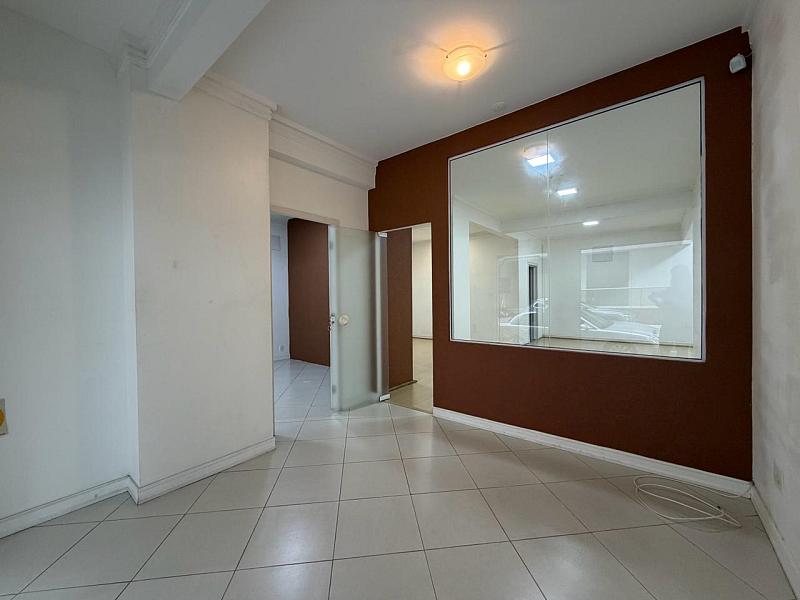 Sala comercial com aproximadamente 75 m², contendo banheiro e cozinha.